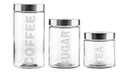Coffee, Sugar, Tea Glass Canister Set with Stainless Steel Lids $20Concord, NC
