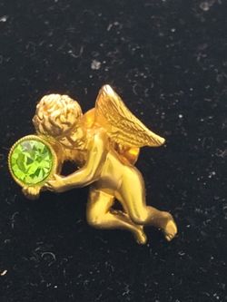 Vintage Avon Gold Toned Cherub Angel Pin With Birthstone August Green Rhinestone #20$7Palmdale, CA