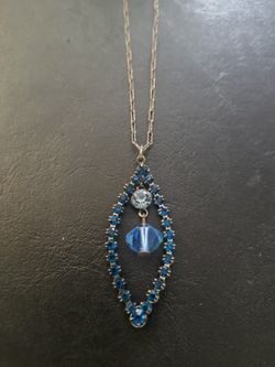 Vintage Blue Crystal & Rhinestone Silvertone chain Necklace #15$7Palmdale, CA
