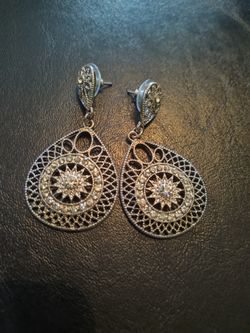 Silverstone Filagree White Crystal Pierced Earrings #9$7Palmdale, CA