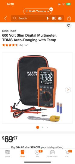 Klein Tools MM450: 600 Volt Slim Digital Multimeter, TRMS Auto-Ranging with Temp$50Tacoma, WA