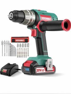 HYCHIKA Cordless Hammer Drill Driver 20V, 400 In-lbs Torque Impact Power Drill with Side Handle,1/2”Metal Chuck 21+3 Clutch, 2.0Ah Battery, LED Light $25Ontario, CA