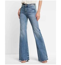 NEW Express women's size 4R mid rise light wash twist seam hyper sculpt '70s bell bottom flare jeans$70San Mateo, CA