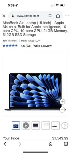 MacBook Air Laptop (15-inch) - Apple M4 chip, Built for Apple Intelligence, 10-core CPU, 10-core GPU, 24GB Memory, 512GB SSD Storage$900San Diego, CA