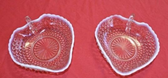 TWO Vintage Moonstone Opalescent Glass Hobnail Crimped Edge Candy Dishes$40Lombard, IL