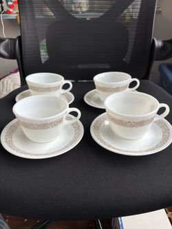 Set of 4 Pyrex Woodland Coffee Cups & MatchingCorelle Corning Coffee Cup Saucers$30Lombard, IL