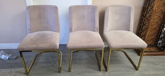 Three pink velvet and gold metal kitchen table chairs$175Bonita, CA