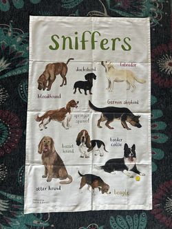 "Sniffers" dog-themed cotton tea towel designed by Sarah Edmonds$5Palm Desert, CA
