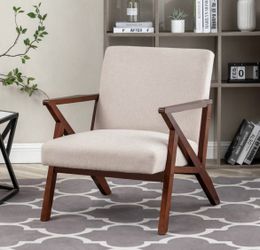 NEW in Box Mid-Century Modern Accent Lounge Armchair in Sandy Beige Fabric/Espresso$85Alpharetta, GA