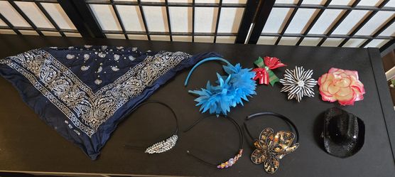 9 pieces - 1 bandana, headbands, & flowers for hair for adults, or kids dress-up$15Arlington Heights, IL