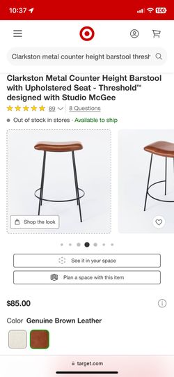 Threshold Barstool Clarkston Metal Counter Height Barstool with Upholstered Seat - Threshold™ designed with Studio McGee$75Roseville, CA