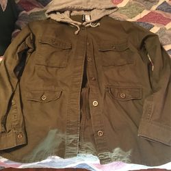 Army Green Jacket With Grey Hoodie $15San Antonio, TX