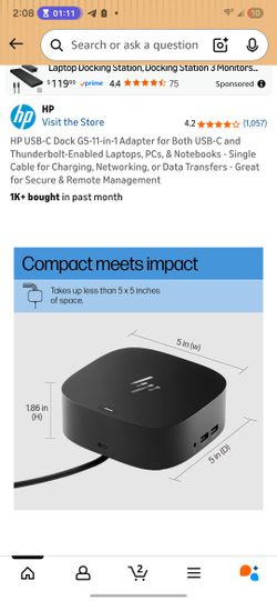 HP USB-C Dock G5-11-in-1 Adapter for Both USB-C and Thunderbolt-Enabled Laptops, PCs, & Notebooks - Single Cable for Charging, Networking, or Data Tra$70Windsor Hills, CA