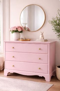 Elegant Blush Pink 3-Drawer Dresser with Gold Knobs – Vintage Style Storage$250Orlando, FL