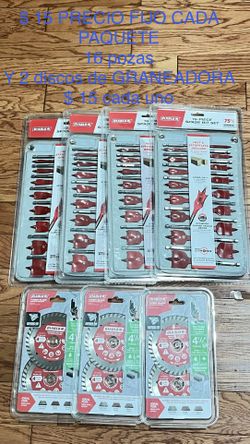 $ 15 PRECIO FIJO CADA PAQUETE 16pzas Y 2 Disco De Graneadora De 4 1/2 Igual $ 15 PRECIO FIJO TODO ES NUEVO $15Dallas, TX