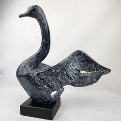 Vintage Austin Inc Prod 1971 Black Swan With Dark Wood Base Large Heavy Art Deco $100Bakersfield, CA