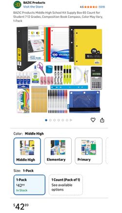 Kids School Supply Kit (65 Count)$25Irving, TX