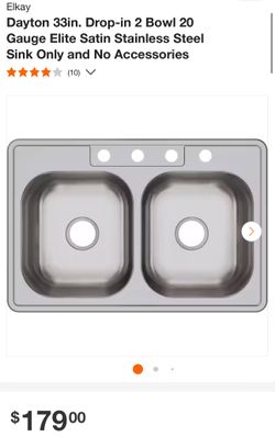 Dayton 33in. Drop-in 2 Bowl 20 Gauge Elite Satin Stainless Steel Sink Only and No Accessories$100Irving, TX