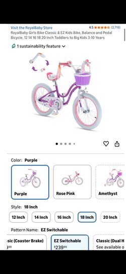New RoyalBaby Girls Bike18 Inch Purple EZ Switchable$120Irving, TX