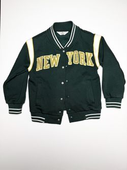 H&M Varsity Jacket Green White Yellow Logo Striped Ribbing Kids US 6/7$17Irwindale, CA