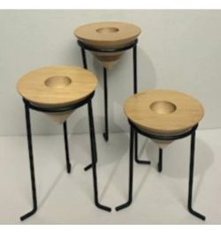 Set Of 3 Vintage Boho Hand Turned Signed Cone Top Candle Holders Over Metal $24Irving, TX