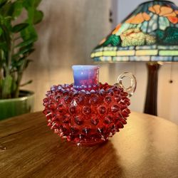 Fenton Art Glass Cranberry Opalescent Hobnail Candlestick Holder – Vintage Handcrafted Glass for Elegant Table or Shelf Decor$50Miramar, FL