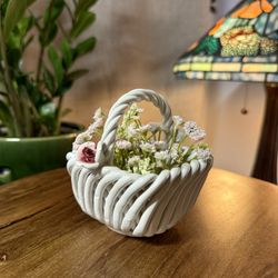 Vintage Ceramic Basket White Twisted Rope Design with Dark Pink Flowers Handmade Floral Porcelain Home Decor Cottagecore Accent$12Pembroke Pines, FL