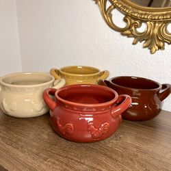 Set of 4 Vintage Ceramic Soup Bowls with Handles Rustic French Country Chili Crocks Rooster Embossed Multicolor Farmhouse Kitchen$37Pembroke Pines, FL