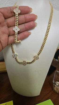 8mm gold plated Cuban link flower chain & bracelet set$200Bothell, WA