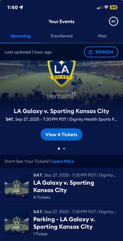 LA Galaxy Vs Kansas City (4 Tickets + GOLD Parking) $150Los Angeles, CA