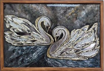 Wall Art -Acrylic on wood, texture paste, mirror, natural stones, resin