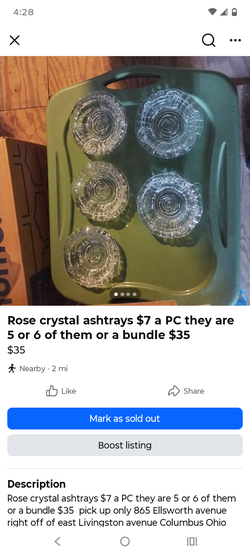 Rose crystal ashtrays $7 a PC they are 5 or 6 of them or a bundle $35$35Columbus, OH