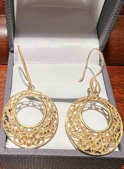10k yellow gold hanging earrings with elegant lace filigree, perfect gift$279Manassas, VA