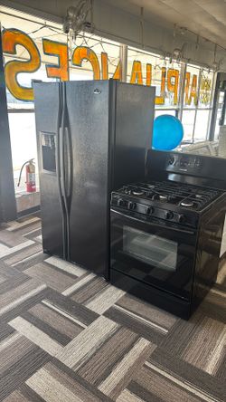Black Fridge Side-By-Side Black Five Burner Gas Stove Combo Set$999Sterling Heights, MI