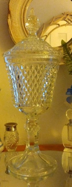 Indiana Glass Clear Diamond Point Candy Box/Urn Chalice$25Berlin, WI