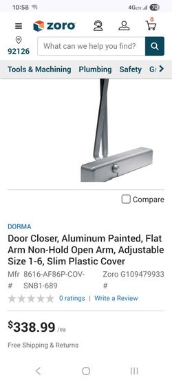 Cafe Closing - Door Closer, Aluminum Painted, Flat Arm Non-Hold Open Arm, Adjustable Size 1-6, Sli$100El Cajon, CA