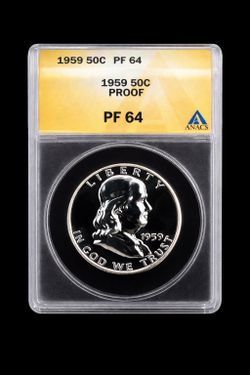 1959 D Franklin 90% Silver Graded 66 And Authenticated. $65Olathe, KS