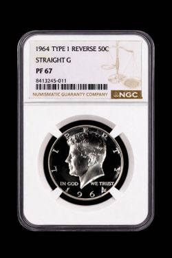 1964 Kennedy Silver Half Dollar 90% Silver– PF67 NGC, Straight G Type 1- RARE!$235Olathe, KS