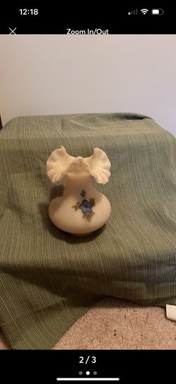 FENTON BLUE DOGWOOD Flowers on CAMEO SATIN Glass Hand Painted & Signed VASE$40Willoughby Hills, OH