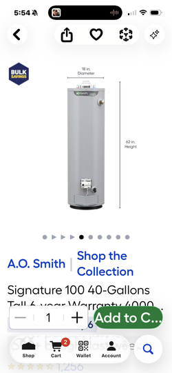 A.O Smith Signature 100 40-Gallons Tall 6-year Warranty 40000 -BTU Natural Gas water Heater$500Castro Valley, CA