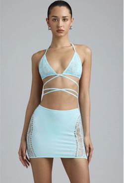 Oh Polly Joni Embellished Mid-Rise Mini Skirt (Ice Blue)$30Montclair, CA