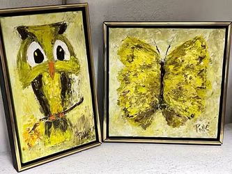 Mid-Century Modern MCM Art Pair – Original 1970s Paintings – Owl & Butterfly – Framed$195Los Angeles, CA