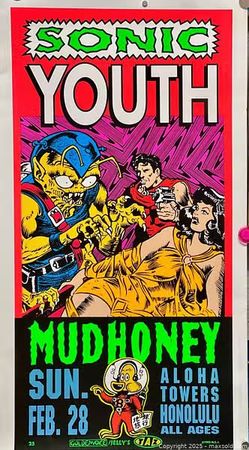 Sonic Youth & Mudhoney Concert Poster 1992 TAZ Signed Numbered 153/400 Hawaii $495Los Angeles, CA