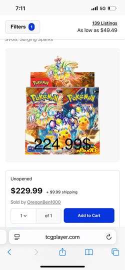 Surging Spark Booster Box Pokemon Cards Sealed$224San Diego, CA