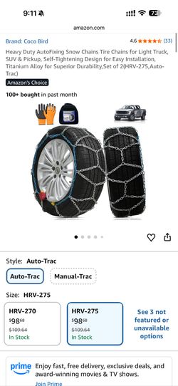Heavy Duty Snow Chains Tire Chains for Light Truck, SUV & Pickup, Easy Installation, Wear-Resistant Alloy Steel for Superior Traction & Stab$45Las Vegas, NV
