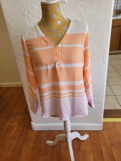 Sheer Longsleeve Lauren Conrad Blouse S White And Orange $25Stockton, CA