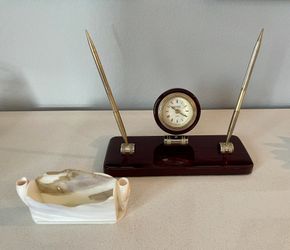 DANBURY Clock With Pens & Seashell Business Card Holder $28Henderson, NV