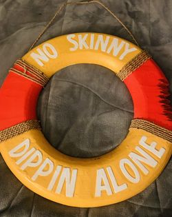 NO SKINNY DIPPING ALONE Lifesaver Wooden Buoy Sign Hand Carved and Painted Art$25Clovis, CA