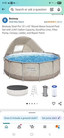 Bestway Steel Pro 13' x 42" Round Above Ground Pool Set with 2,941 Gallon Capacity, DuraPlus Liner, Filter Pump, Canopy, Ladder, and Repair Patch$200Fort Bliss, TX