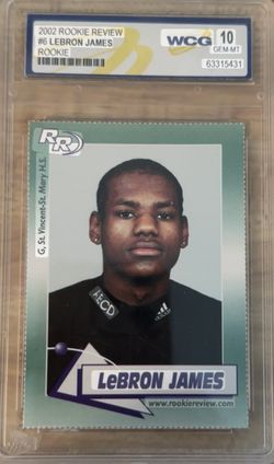 graded 2002 Rookie Review #6 LeBron James rookie card, graded GEM-MT 10 by WCG. This card is from a short-printed magazine distributed at the 2002 Nat$75Green Valley Lake, CA